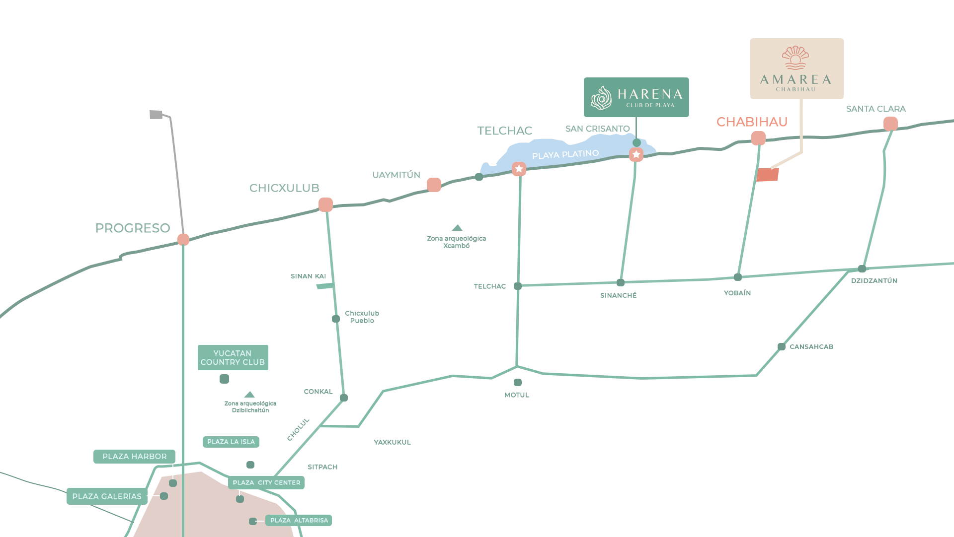 Amarea Chabihau se ubica en la costa norte de Yucatán, dentro de lo que hoy se conoce como la Riviera Yucateca — una franja costera en plena expansión, con infraestructura federal llegando y demanda inmobiliaria creciente. El punto de entrada perfecto antes de que los precios alcancen los niveles de Quintana Roo.